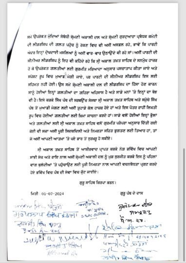 ਇਨ੍ਹਾਂ ਆਗੂਆਂ ਨੇ ਕਿਹਾ ਕਿ ਅਕਾਲੀ ਸਰਕਾਰ ਸਮੇਂ ਕੀਤੀਆਂ ਗਈਆਂ ਗਲਤੀਆਂ ਲਈ ਉਹ ਆਪਣੇ ਆਪ ਨੂੰ ਦੋਸ਼ੀ ਸਮਝਦੇ ਹਨ ਅਤੇ ਅਕਾਲ ਤਖ਼ਤ ਇਸ ਲਈ ਉਨ੍ਹਾਂ ਨੂੰ ਜੋ ਵੀ ਸਜ਼ਾ ਲਾਵੇਗਾ ਉਹ ਉਸਨੂੰ ਮਨਜ਼ੂਰ ਕਰਨਗੇ।
